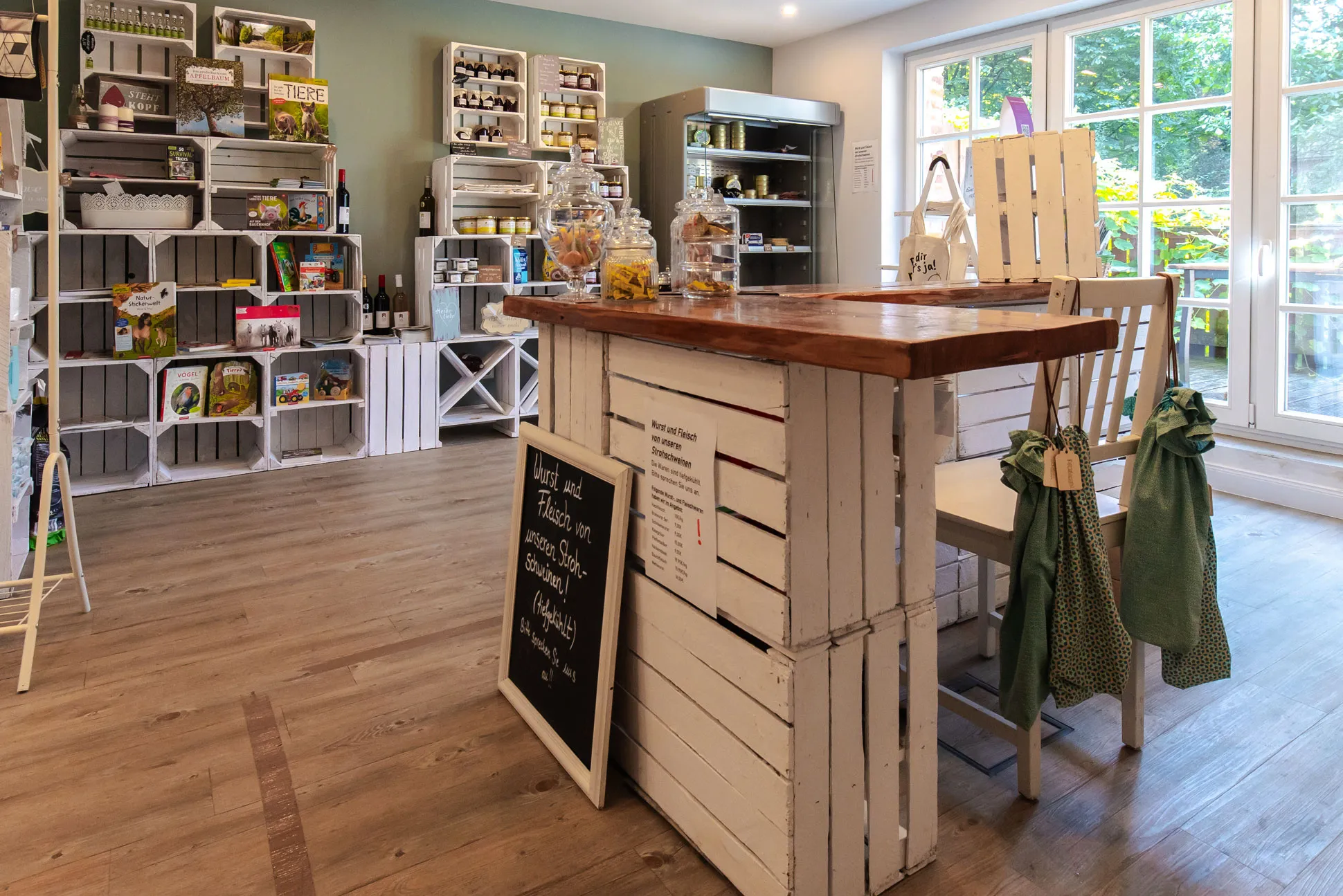 Unser Hofladen bietet unseren Gästen und Kunden ein kleines Sortiment aus Hofprodukten, Lebensmitteln und Geschenkartikeln an.